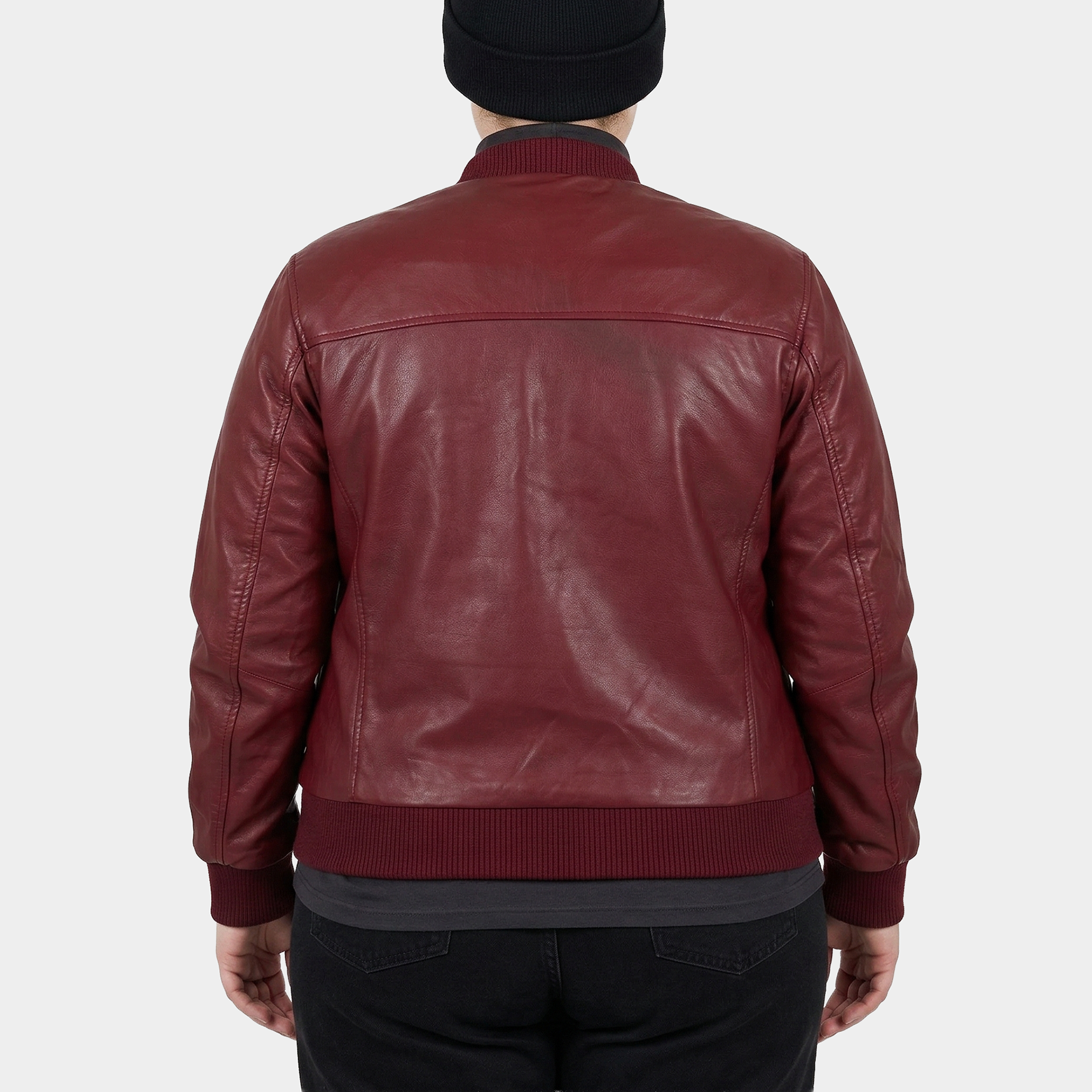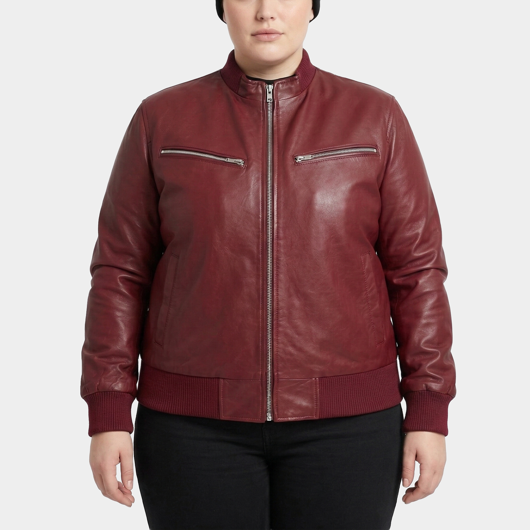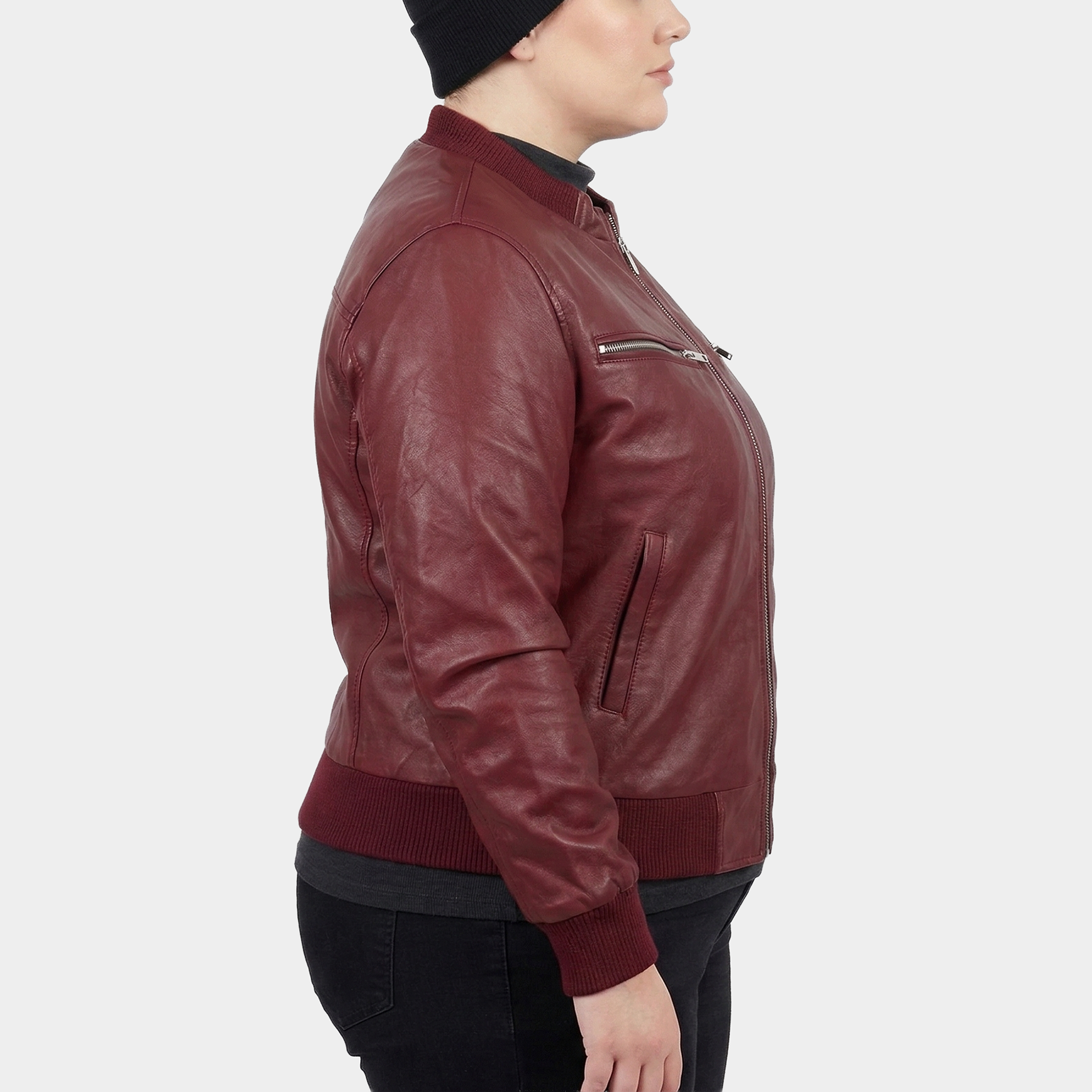 Luciana Burgundy Plus Size Leather Bomber Jacket