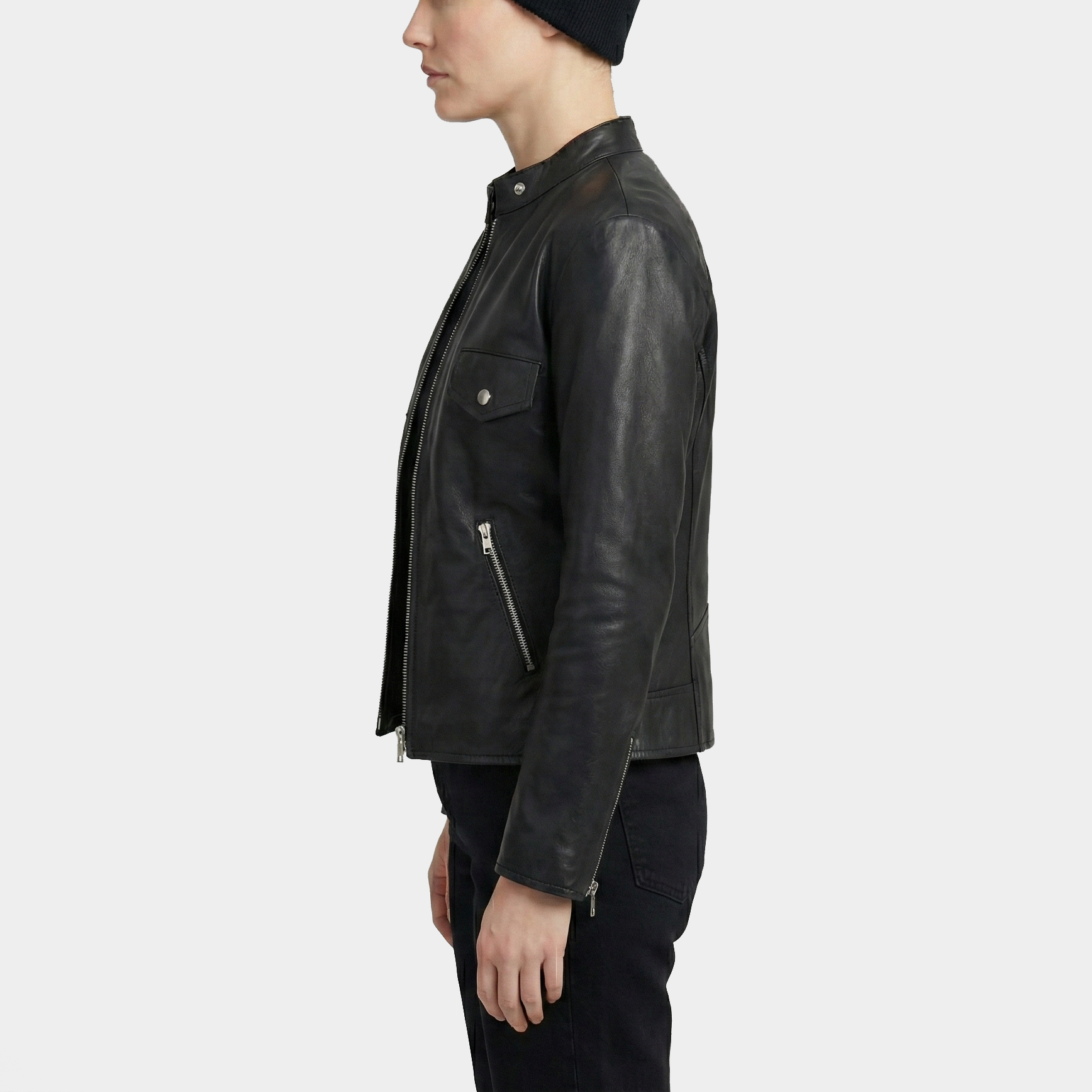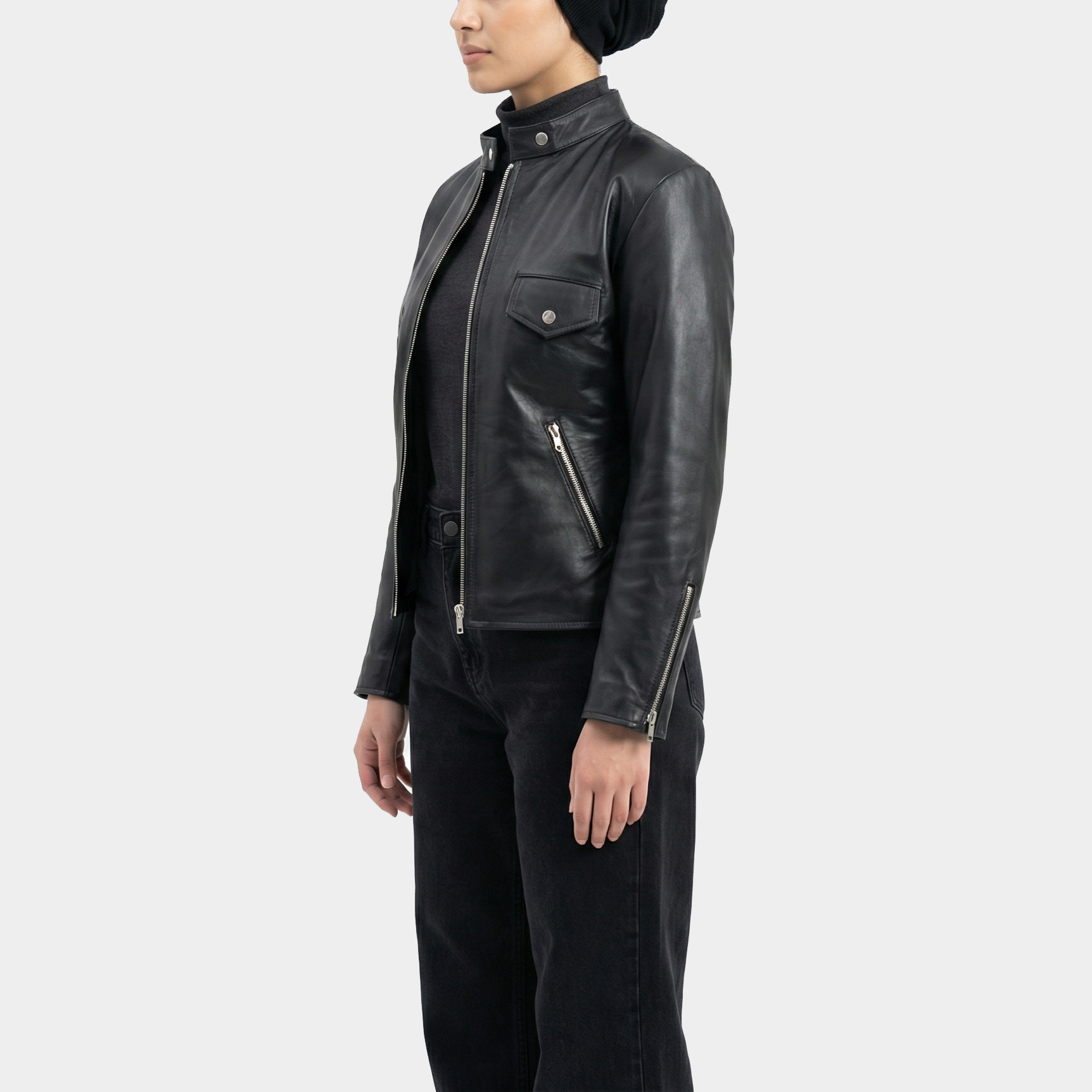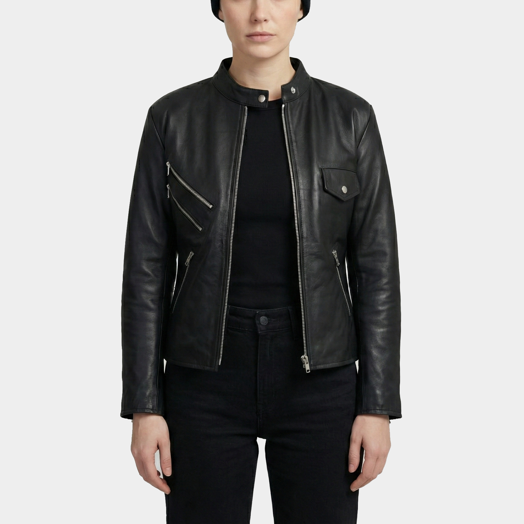Nancy Black Leather Moto Jacket