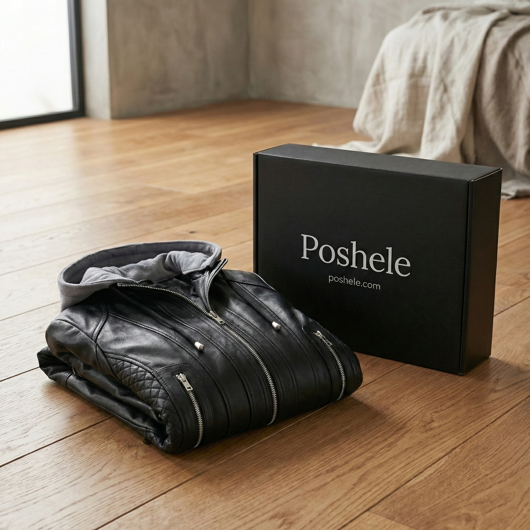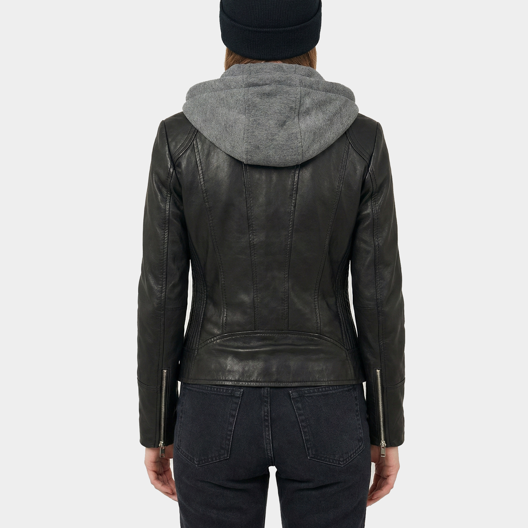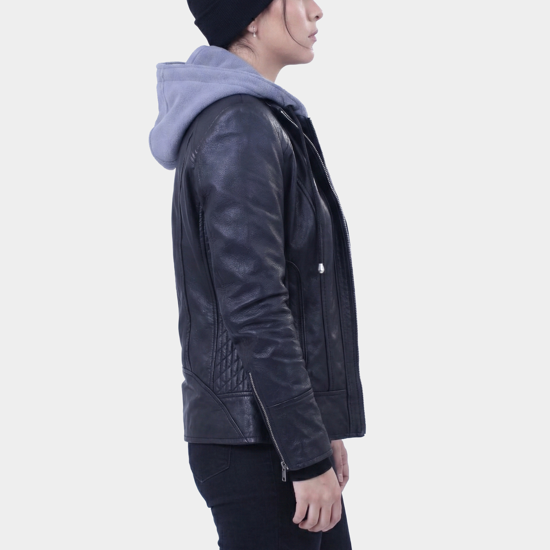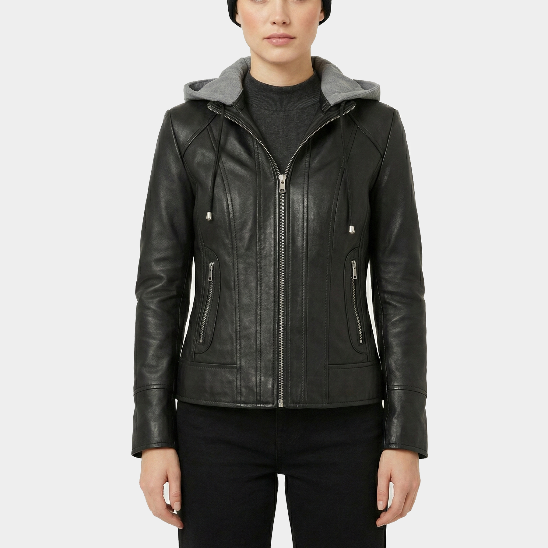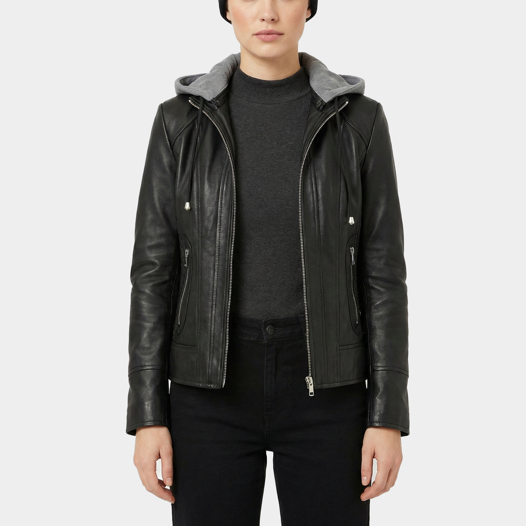 Amelia Black Hooded Leather Jacket