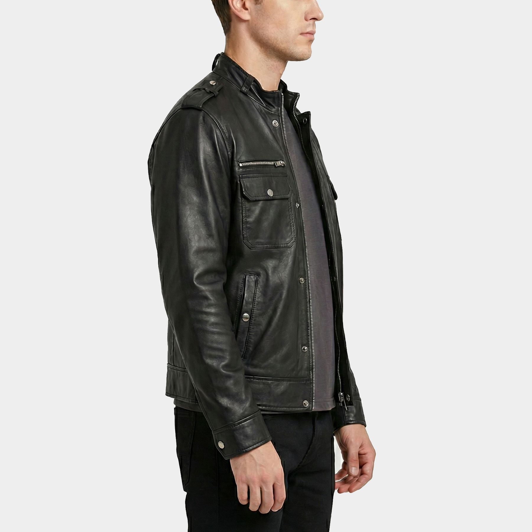 Andy Black Leather Field Jacket