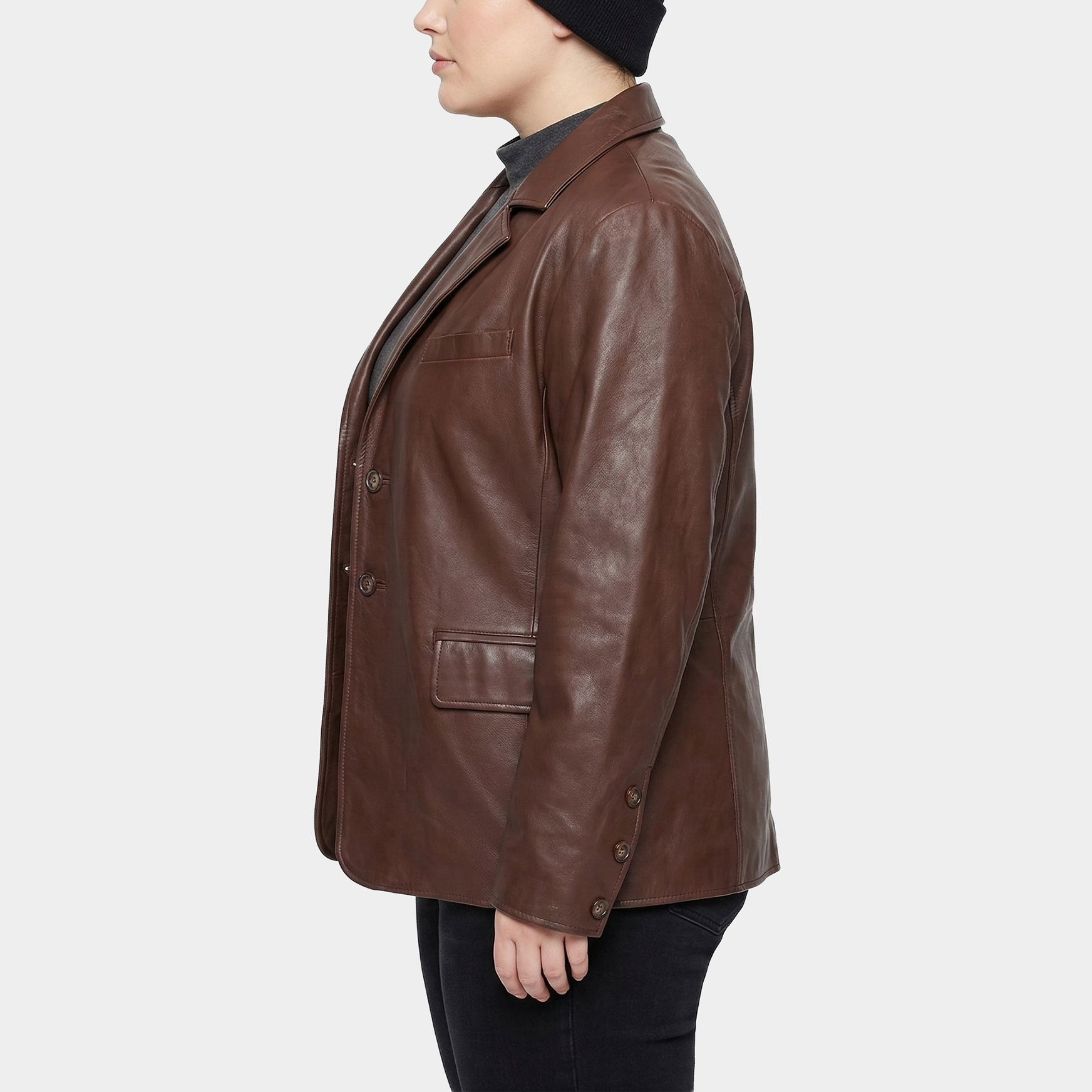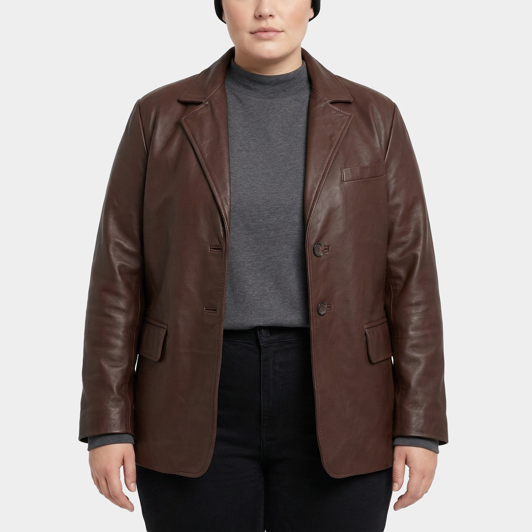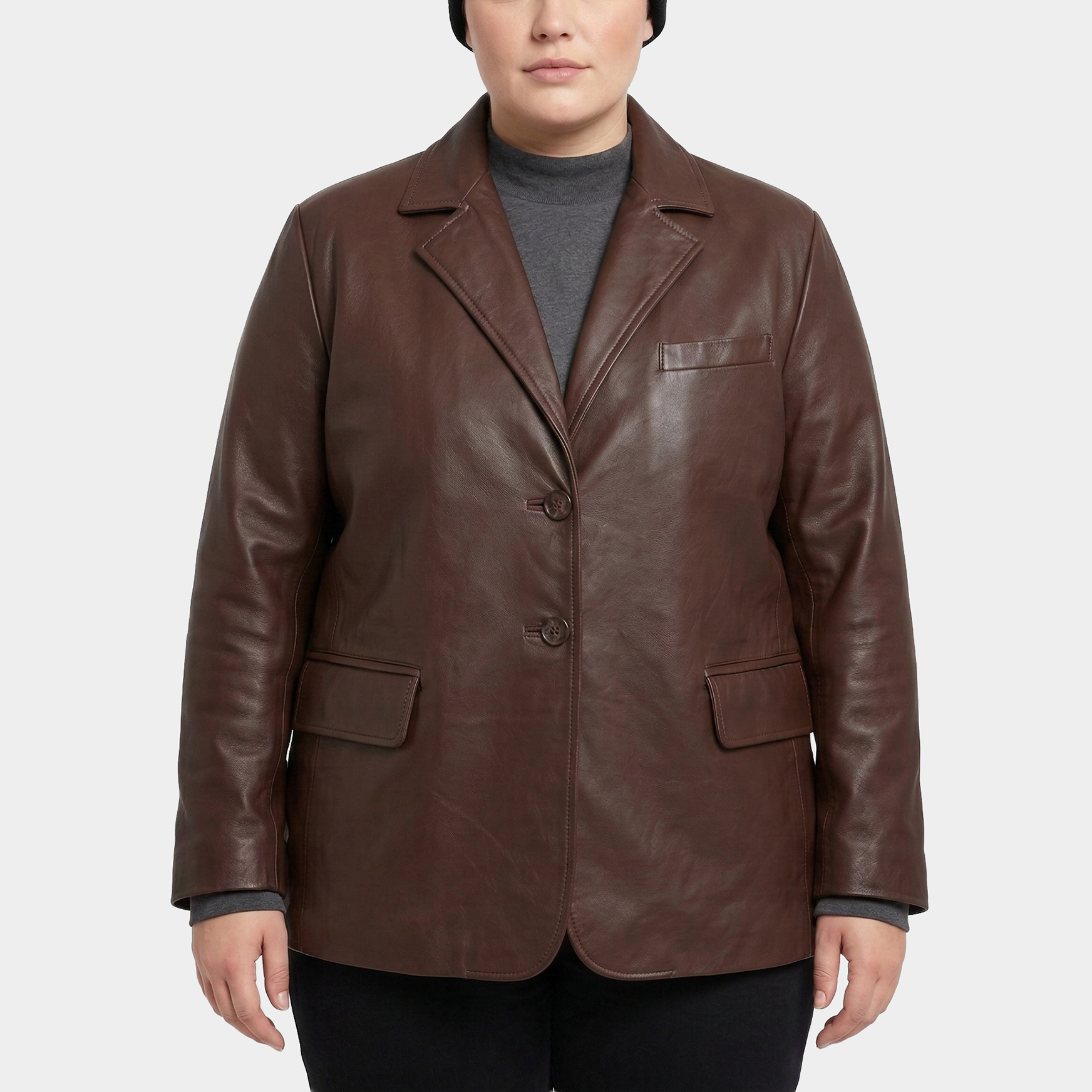 Clara Brown Plus Size Leather Blazer Coat