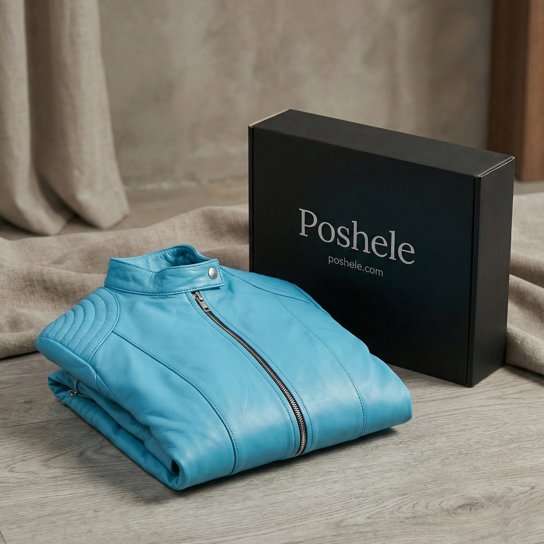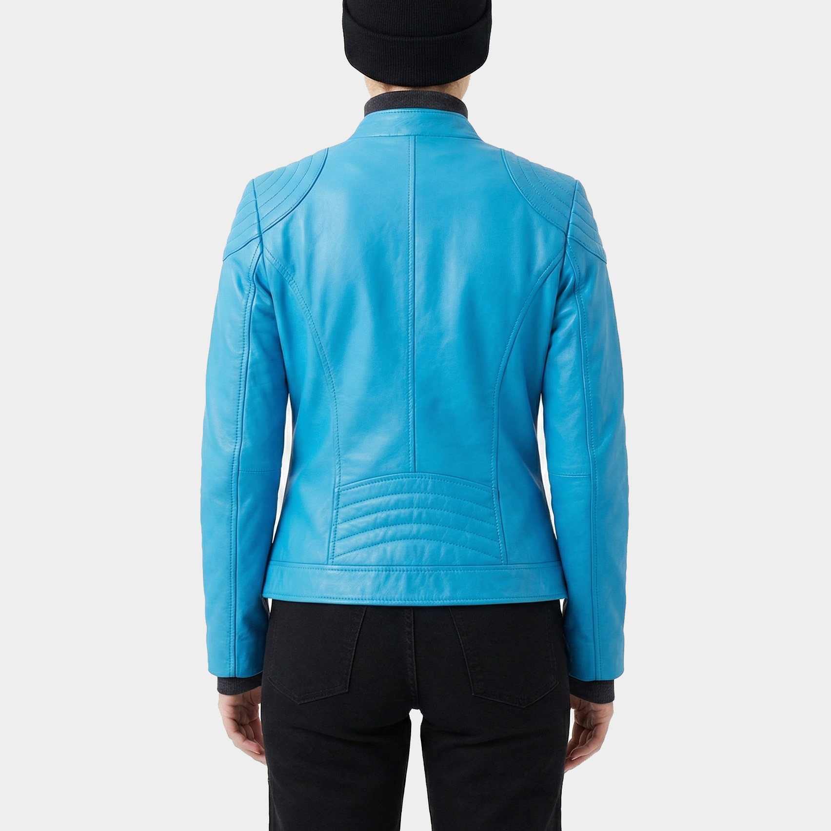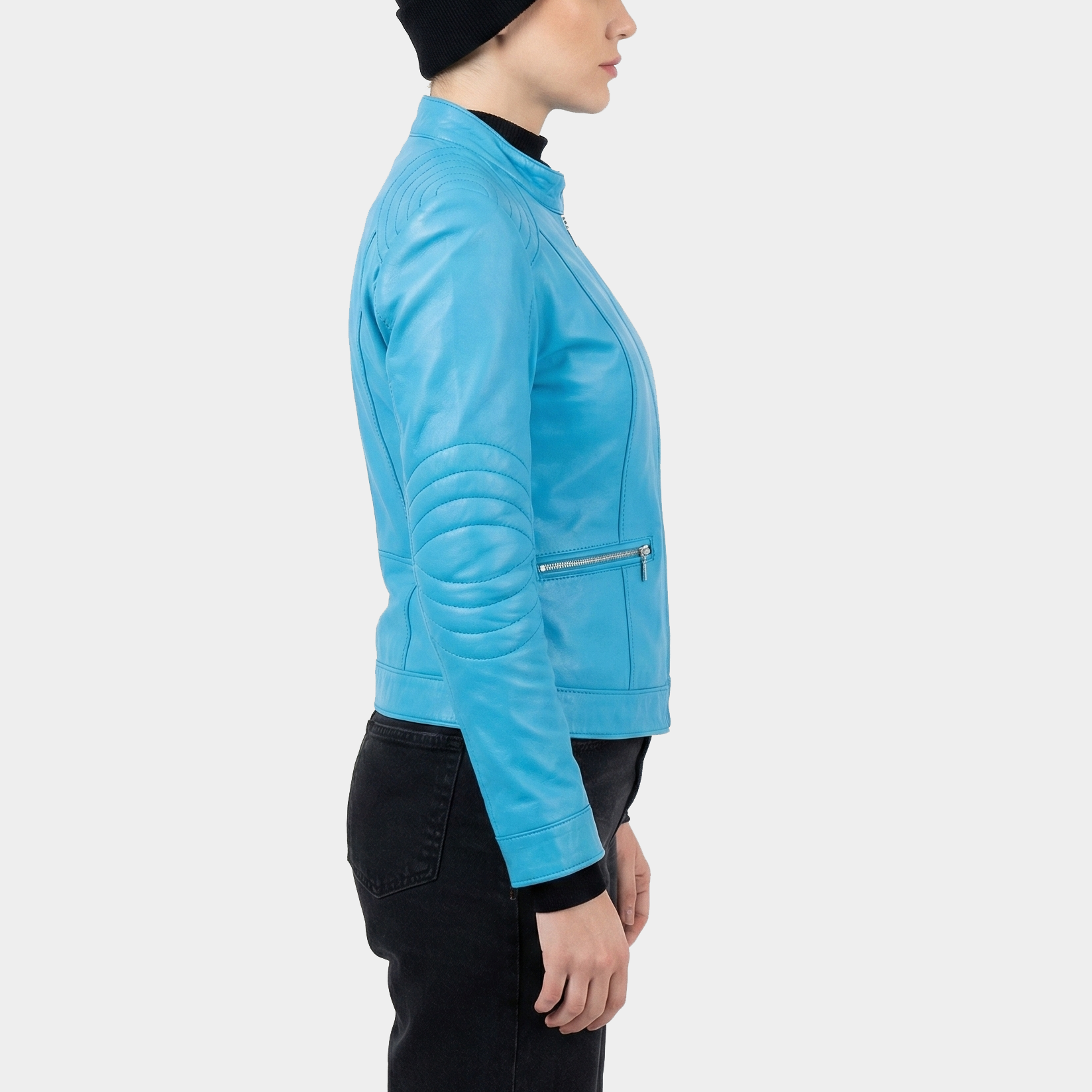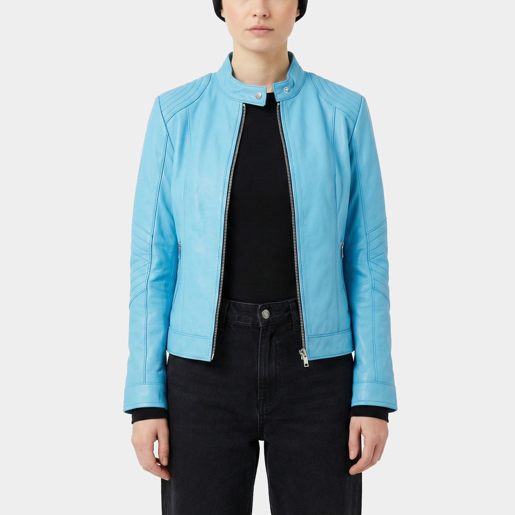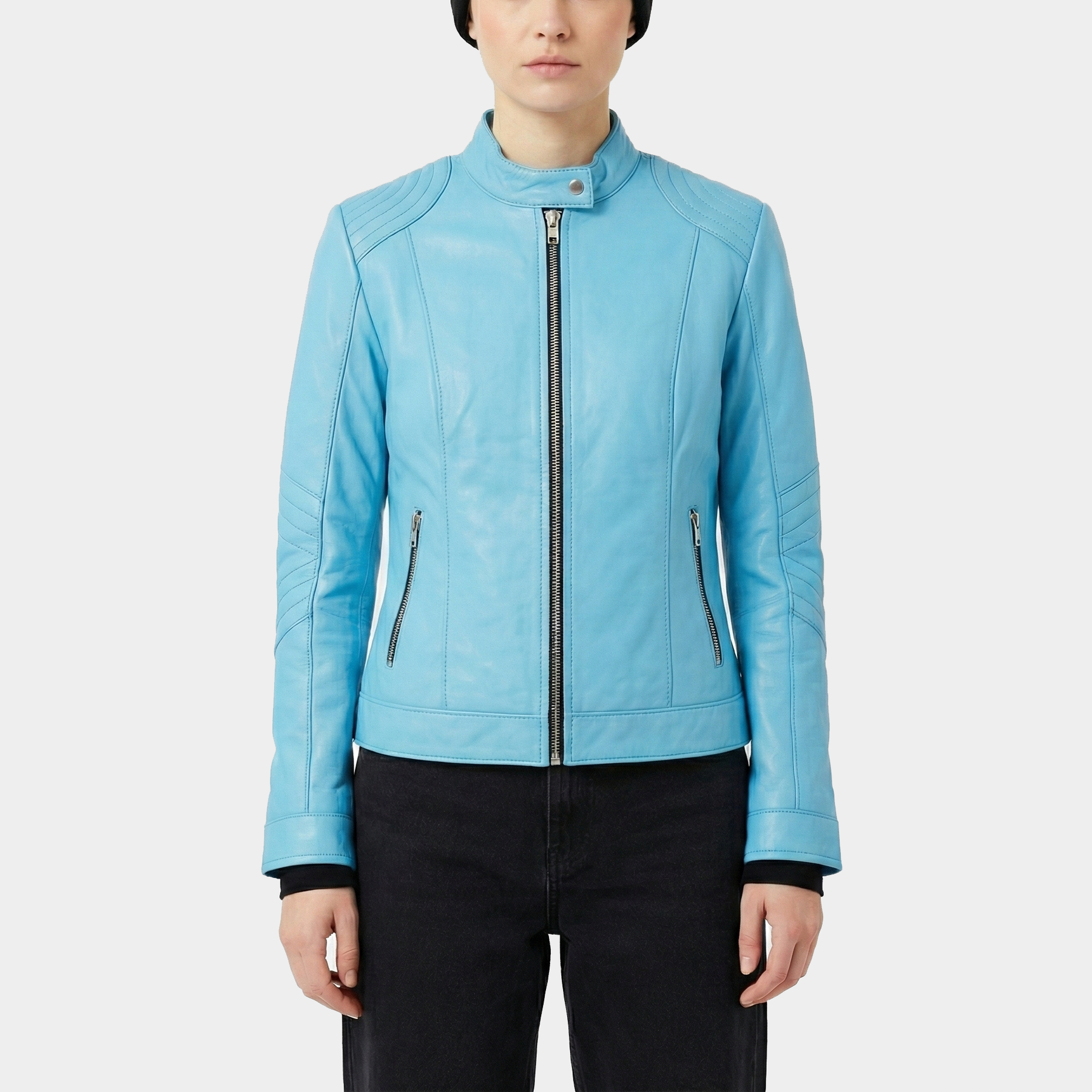 Elara Sky Blue Leather Jacket