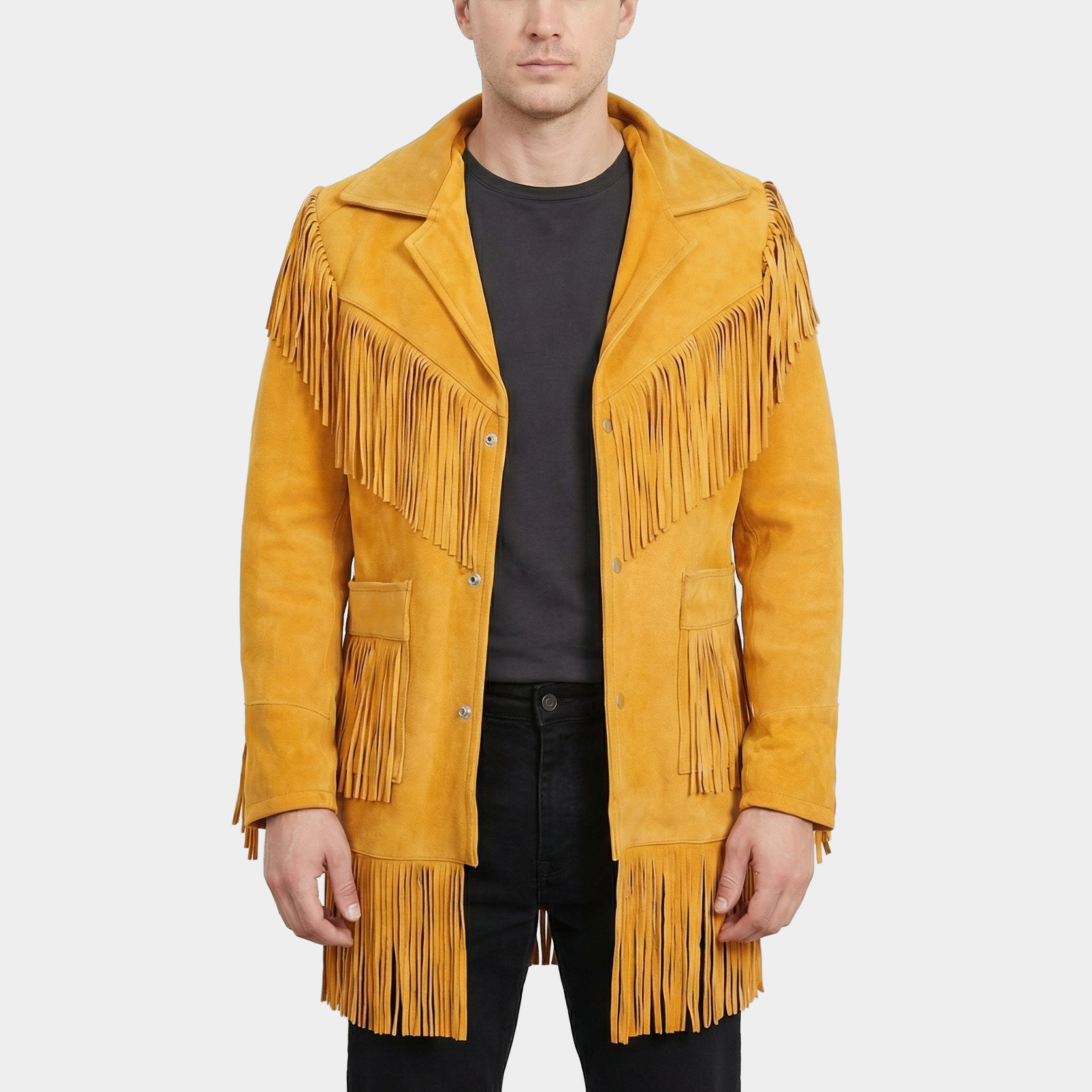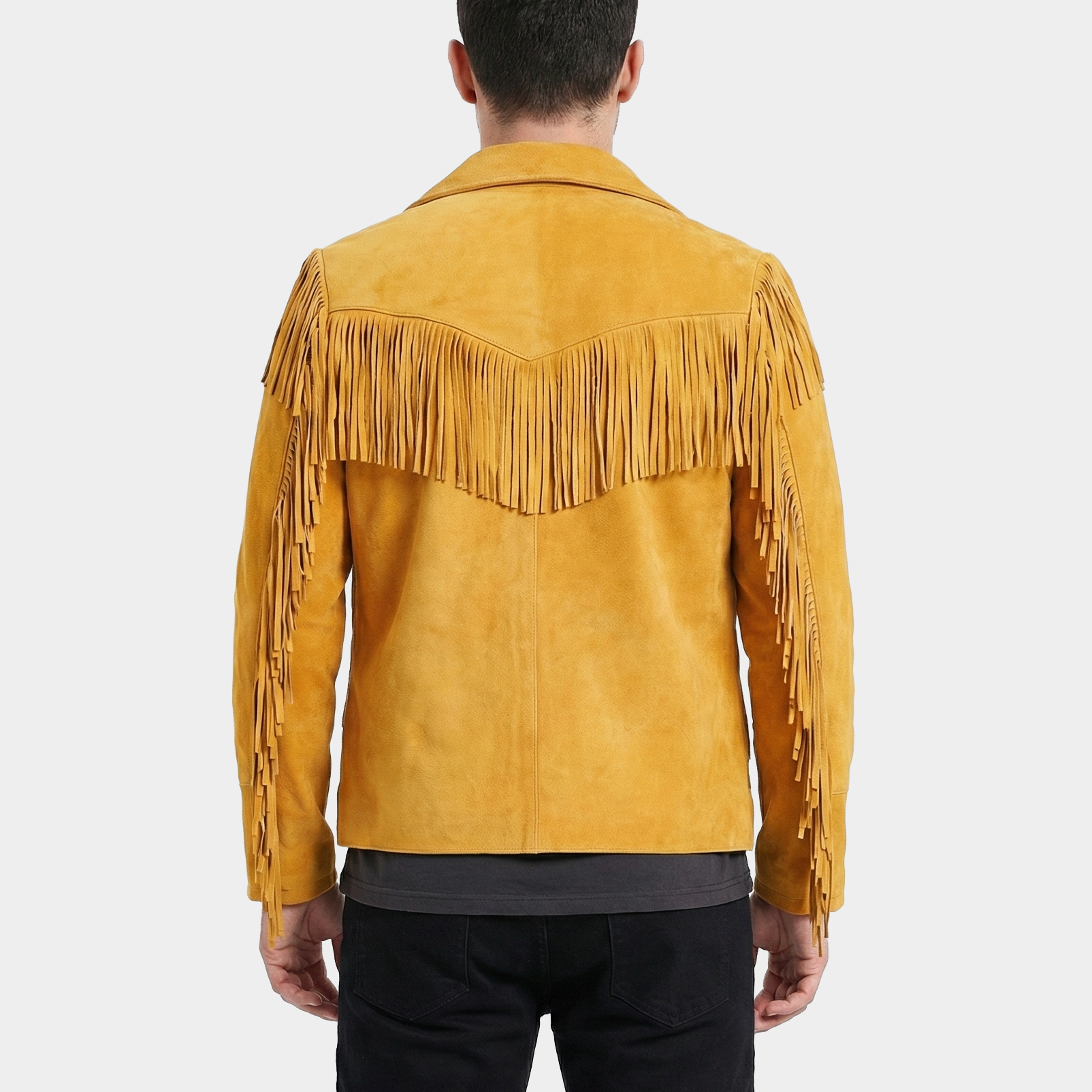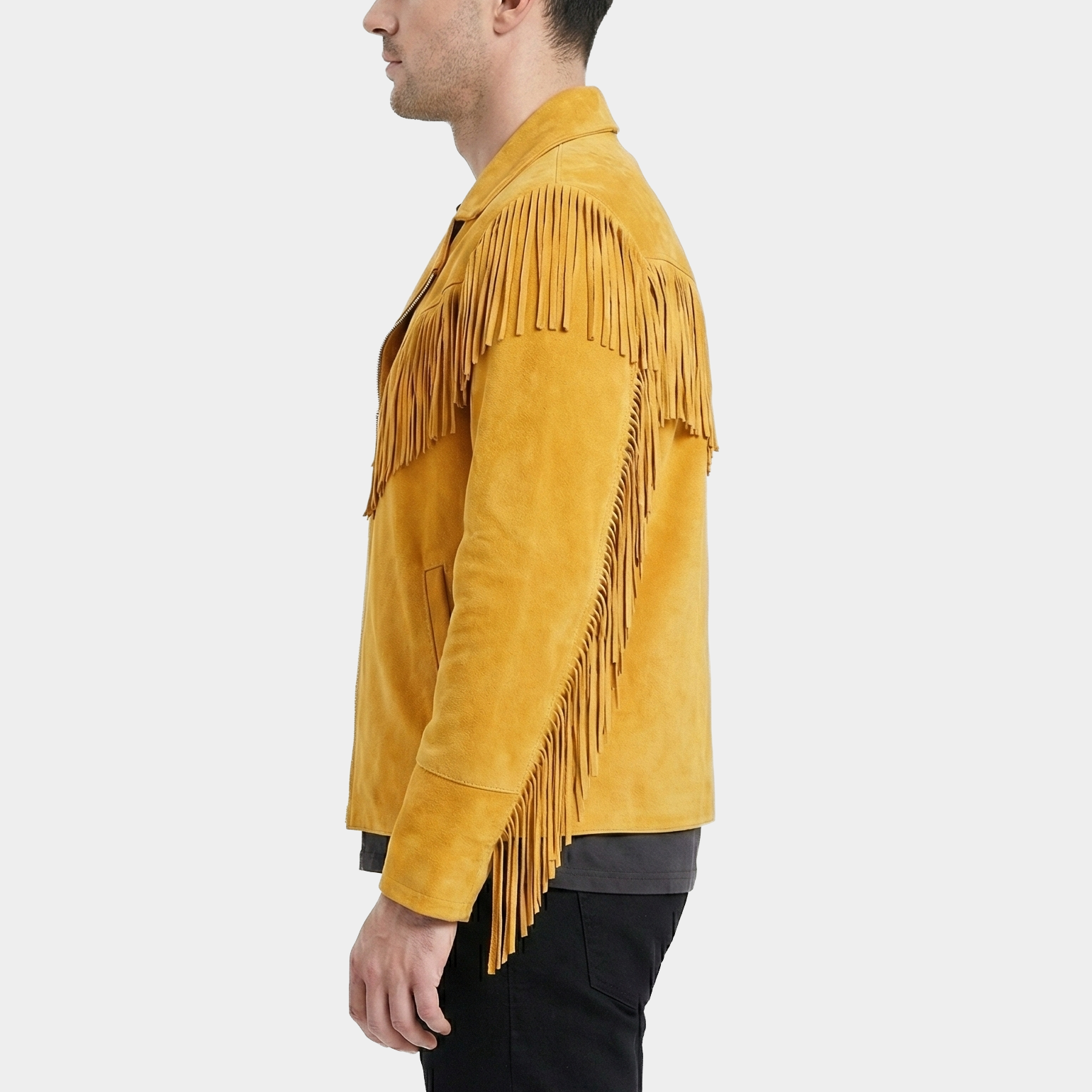 Design: Full fringe detailing across chest, back yoke, sleeves, and hem