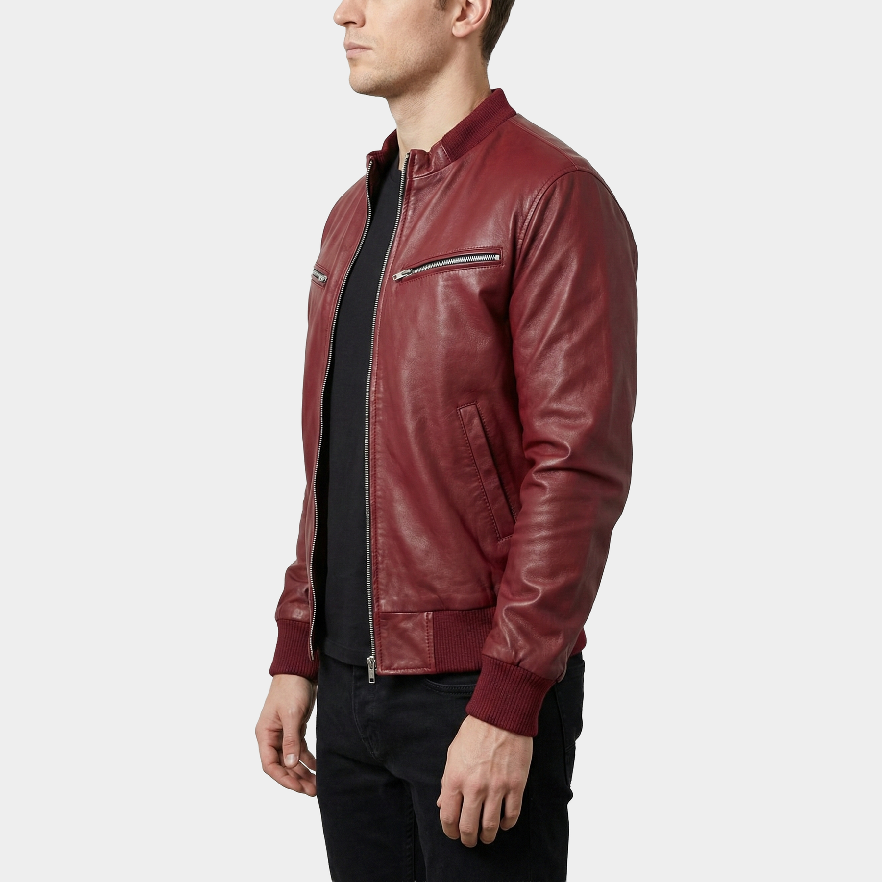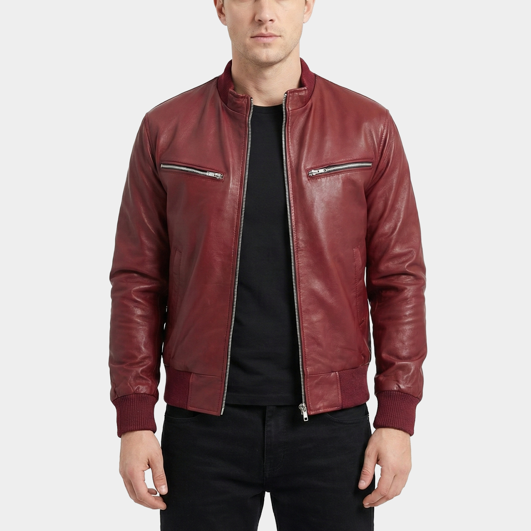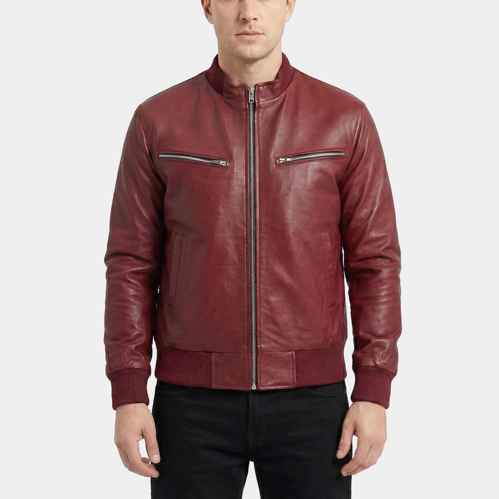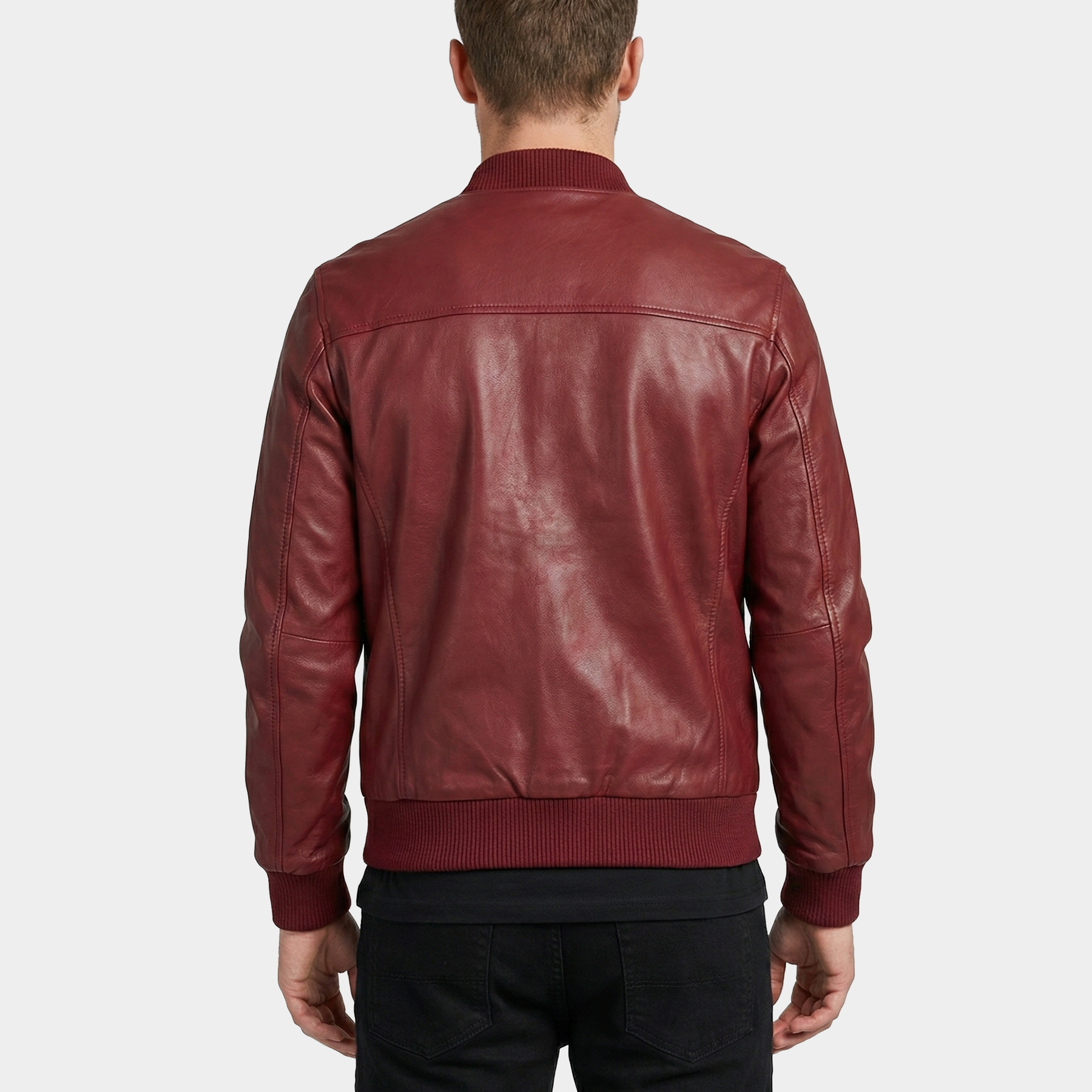 Marrow Maroon Leather Bomber Jacket