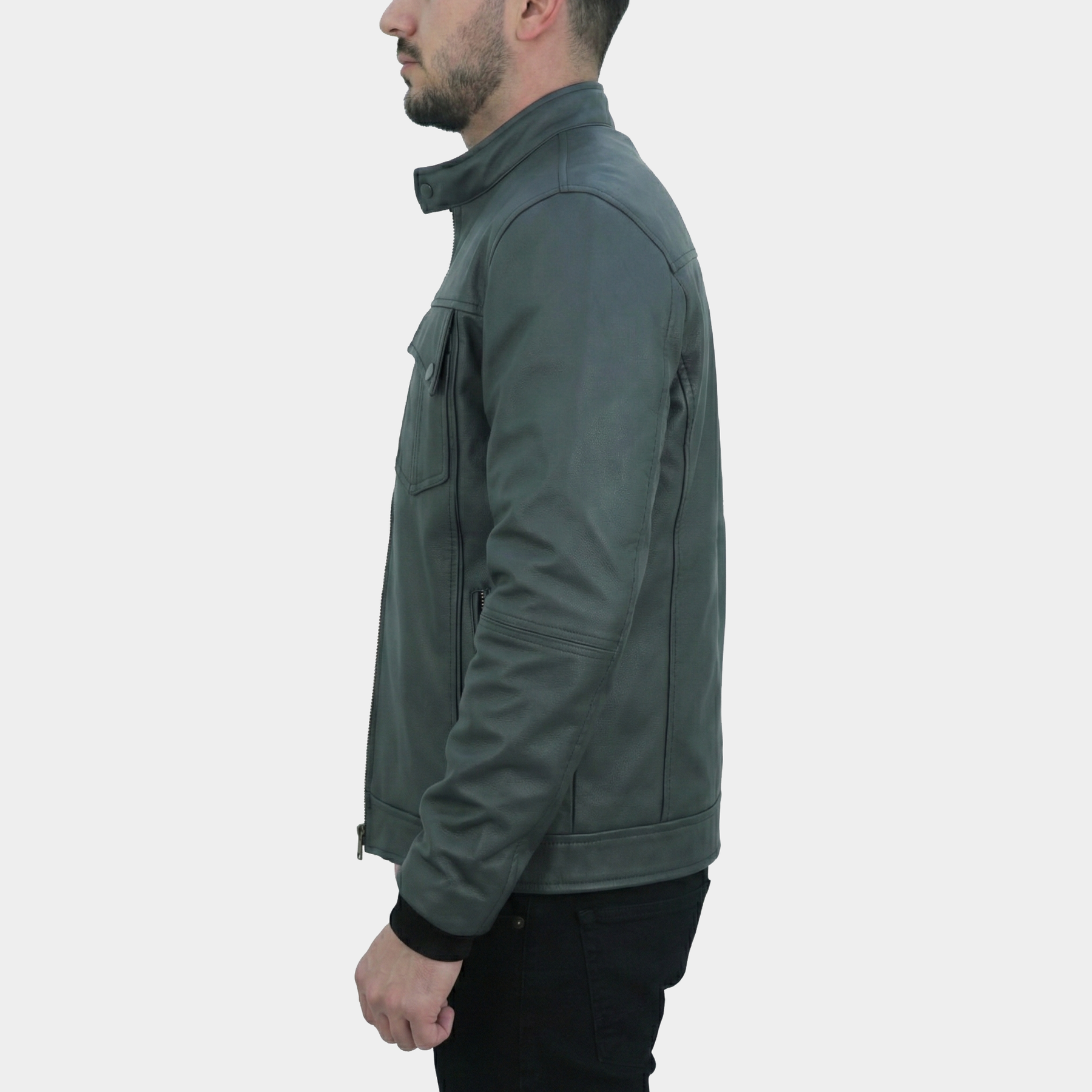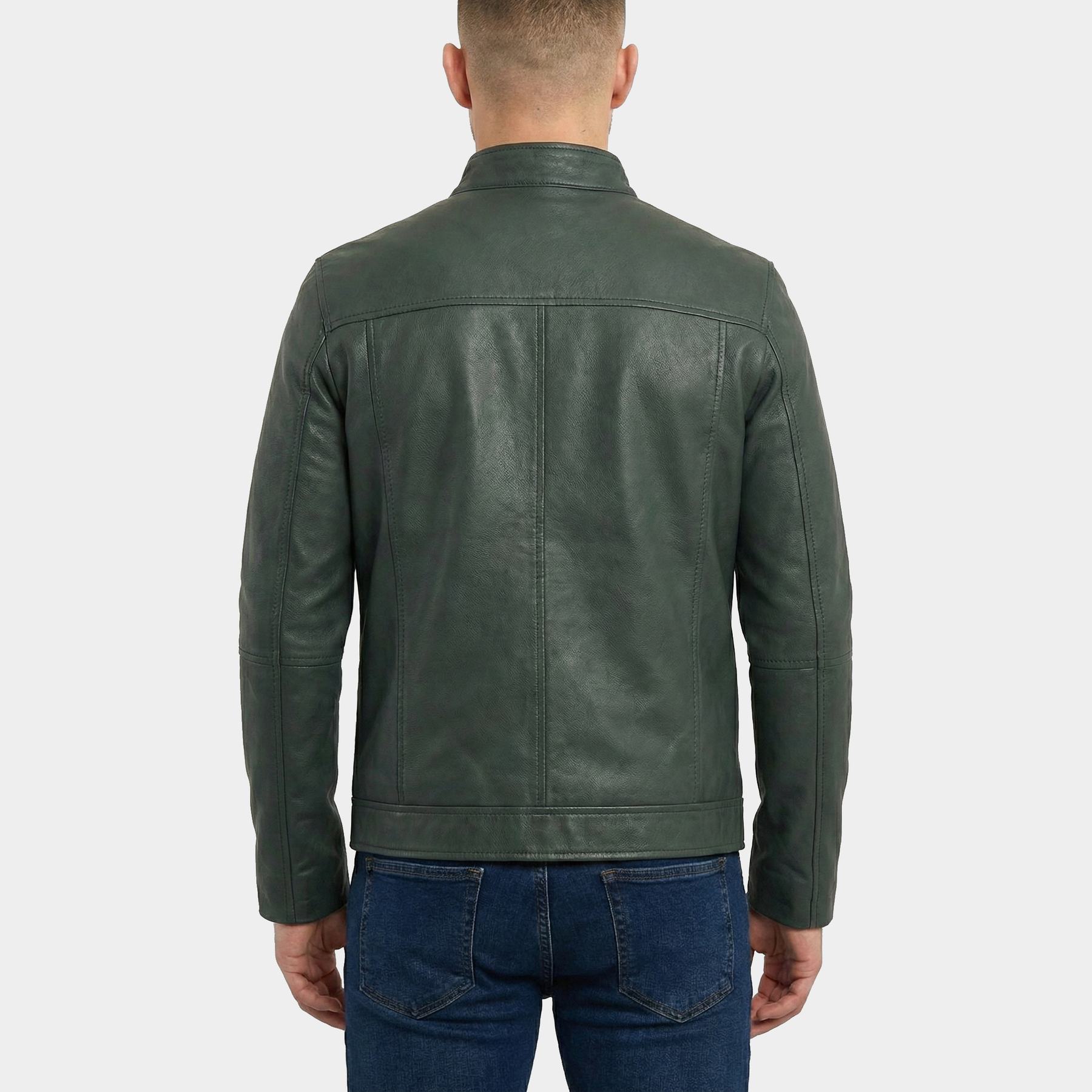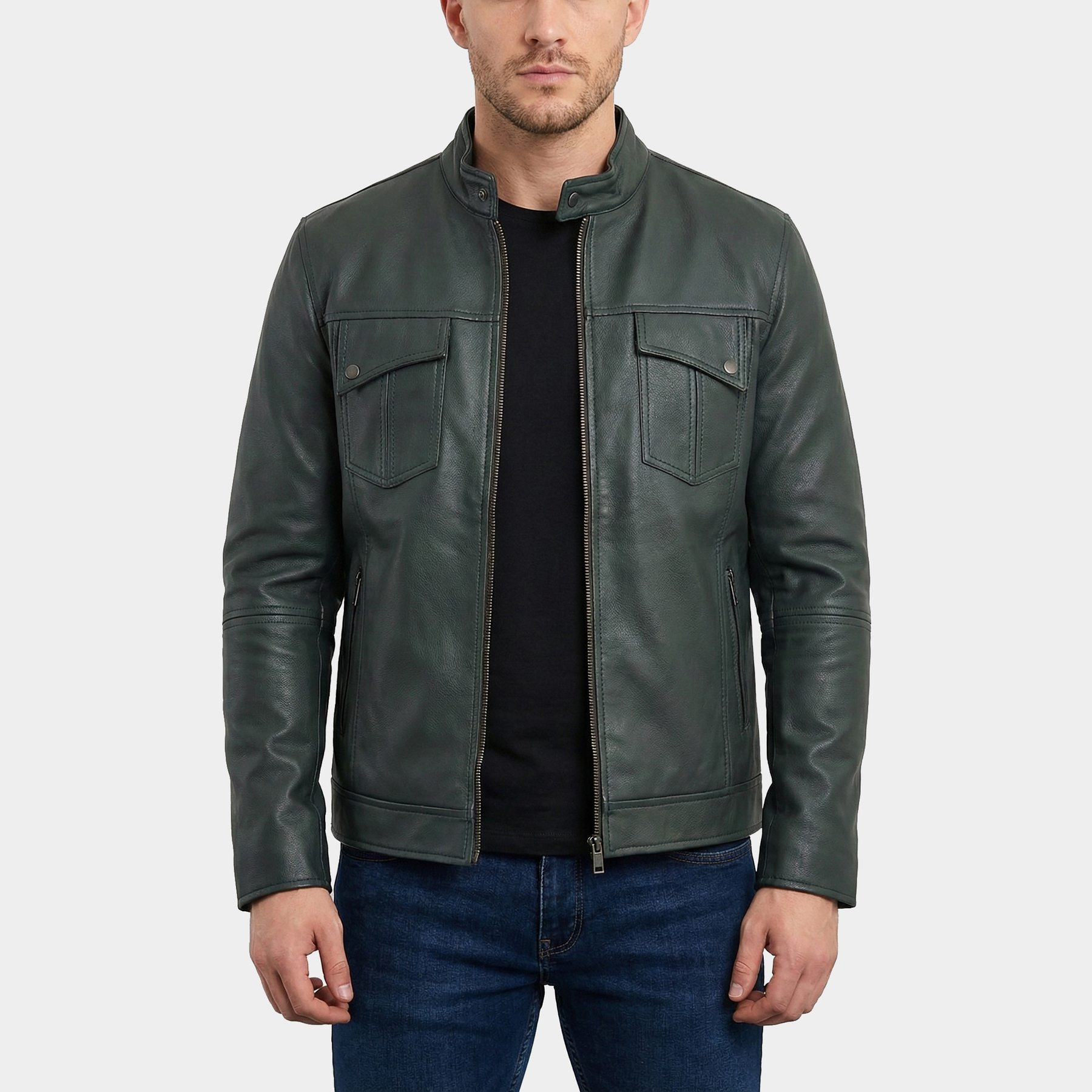 Style: Minimalist racer jacket with stand collar