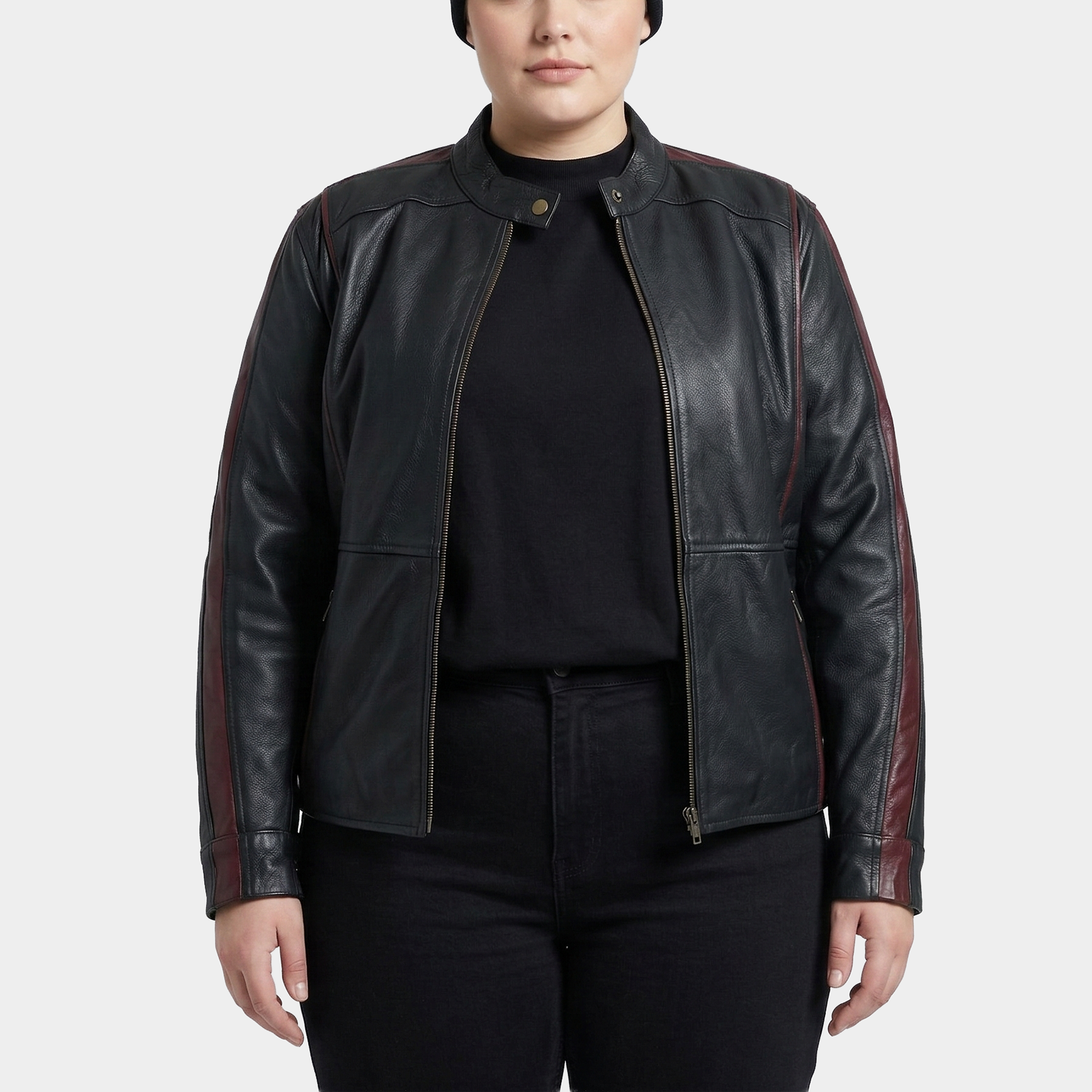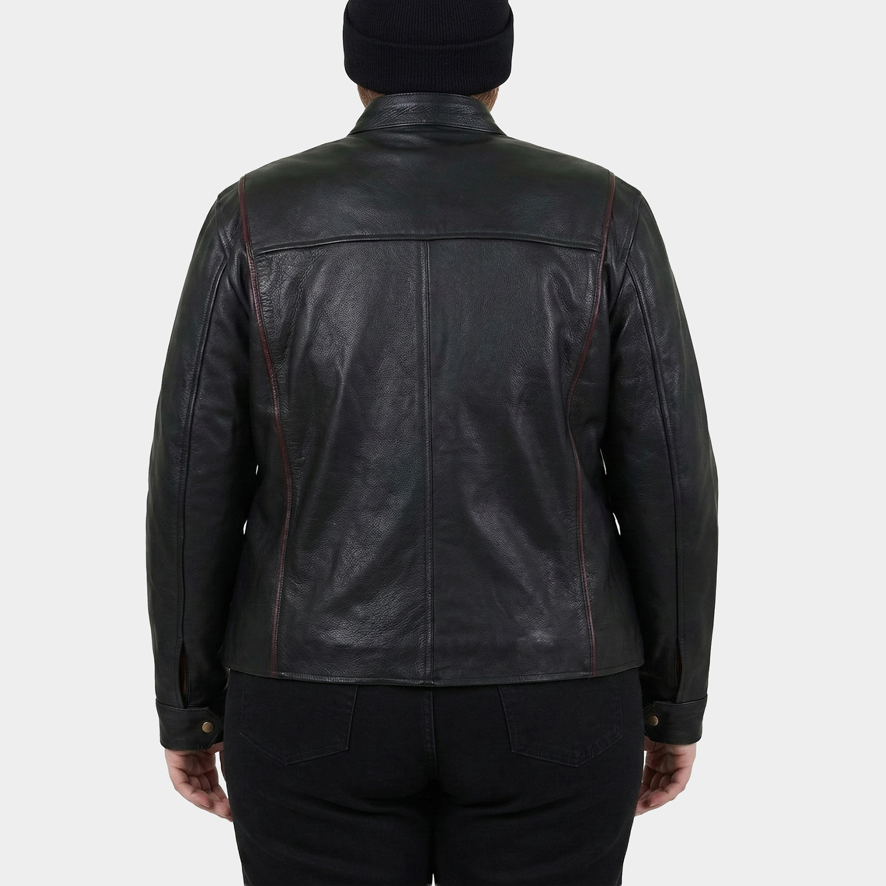 Victoria Black Plus Size Leather Cafe Racer Jacket